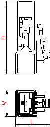 產(chǎn)品圖號 尺寸 對配端子 材質(zhì) 色彩 數(shù)量/袋 備注 L H W 7.865.2397 20.8 44.0 15.8 C-74 PA66+GF33 黃色 200